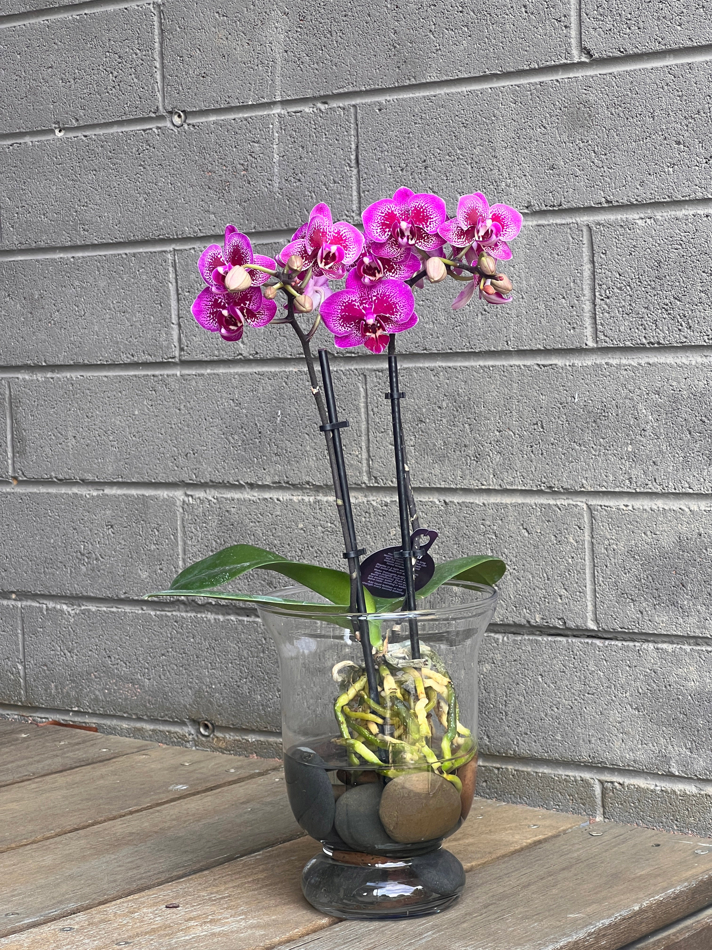 Looking for a gift that’s equal parts stunning and stress-free? Or maybe a low-maintenance beauty for your own space? Our water-cultured phalaenopsis orchids potted in a beautiful glass vase with river stones are the perfect choice, it is elegant, modern, and incredibly easy to care for.